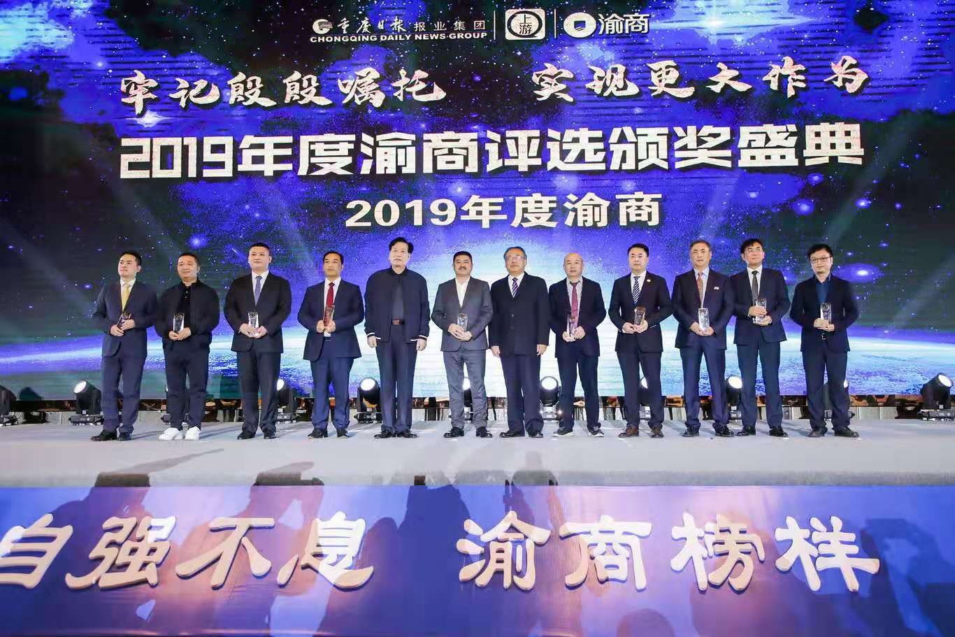 11月3日下午,由北碚区人民政府、重庆日报报业集团、重庆市总商会主办,重报都市传媒集团承办的“渝商产业合作发展交流会暨2019年度渝商、新锐渝商颁奖典礼在北碚隆重举行。作为获奖嘉宾代表,拼搏买球董事长兼总经理鹿有忠在颁奖典礼上发表了获奖感言。